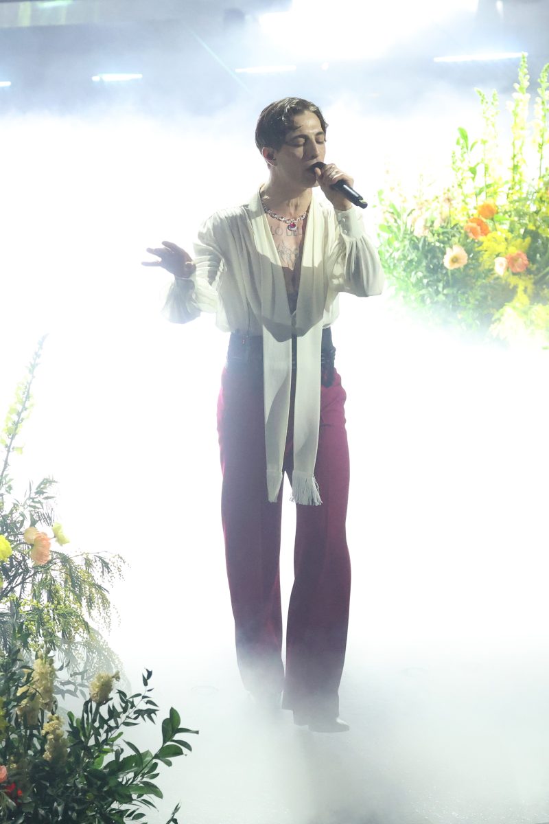 Romanticismo bohemien per la seconda apparizione di Damiano David nella seconda serata del Festival. Retrofuturismo con un atteggiamento inclusivo che da tempo contraddistingue il cantante. Voto 7.