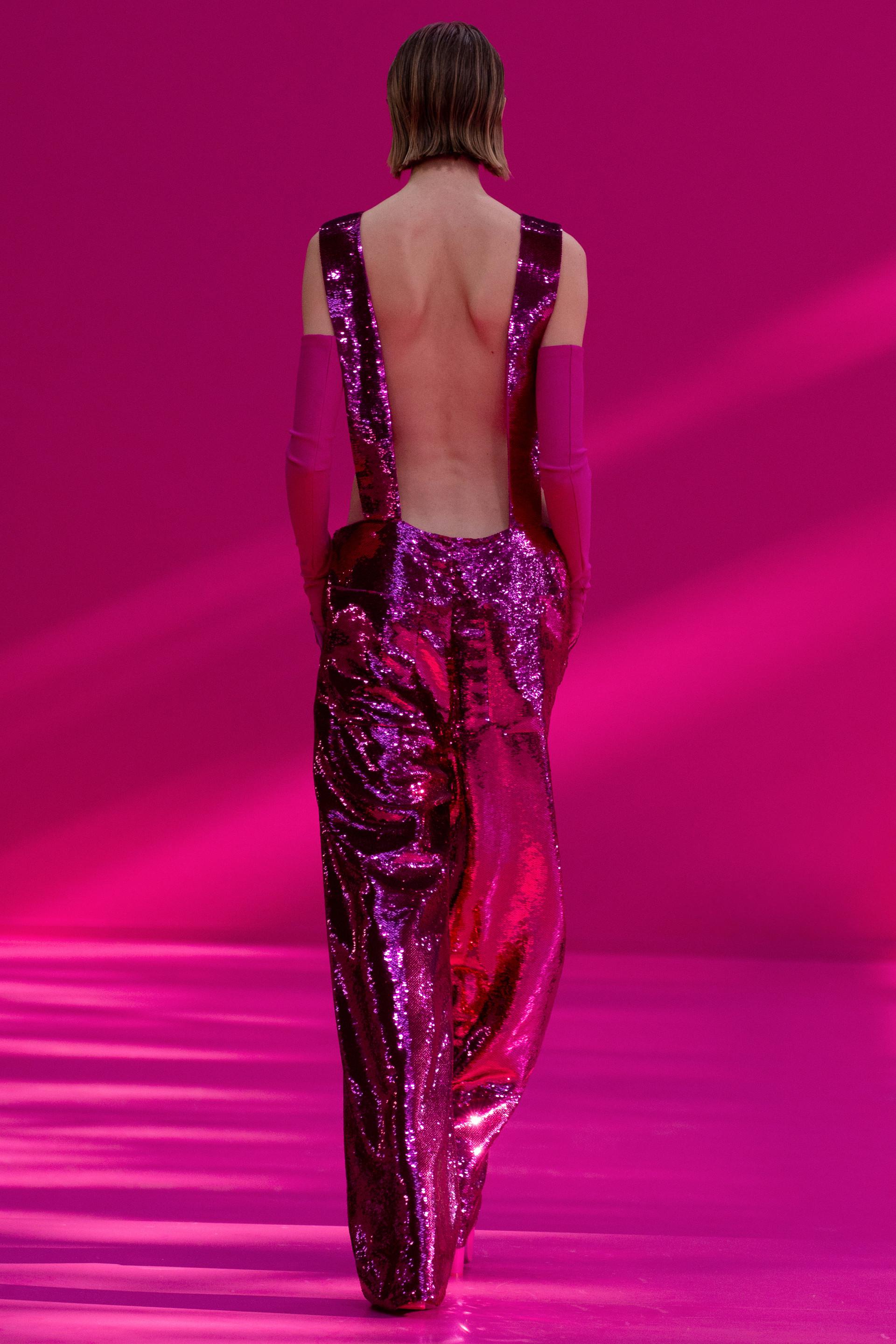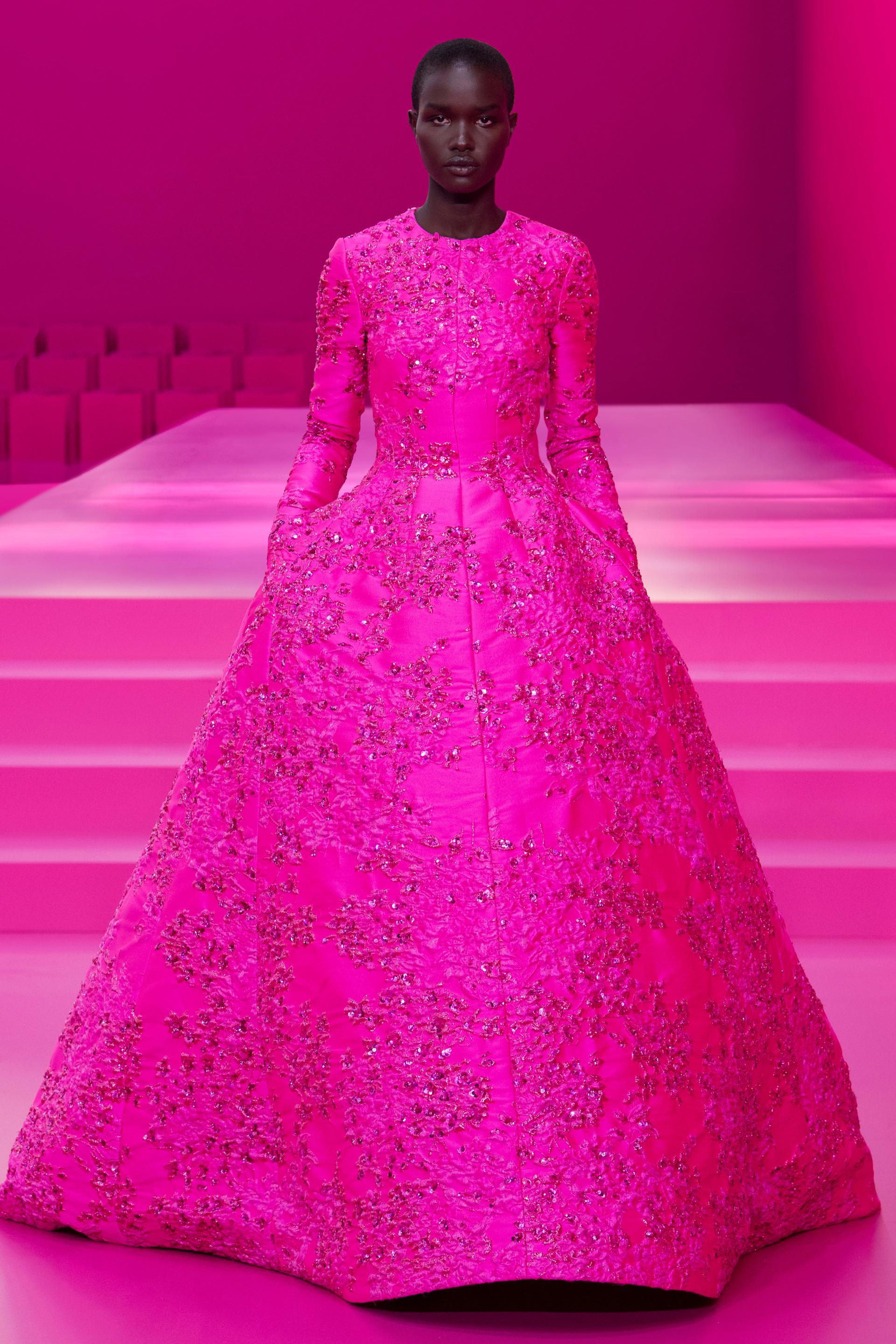 «Monotone», ma certamente non monòtona. La collezione autunno-inverno di Valentino – presentata al Carreau du Temple a Parigi domenica scorsa – è una celebrazione del colore rosa e di tutto quello che rappresenta. Per il creativo, la scelta di questo specifico pantone è una manifestazione dell’inconscio e una liberazione della necessità del realismo, ma anche un tentativo di sovvertire i suoi significati culturali, come l’associazione alla femminilità o al punk.