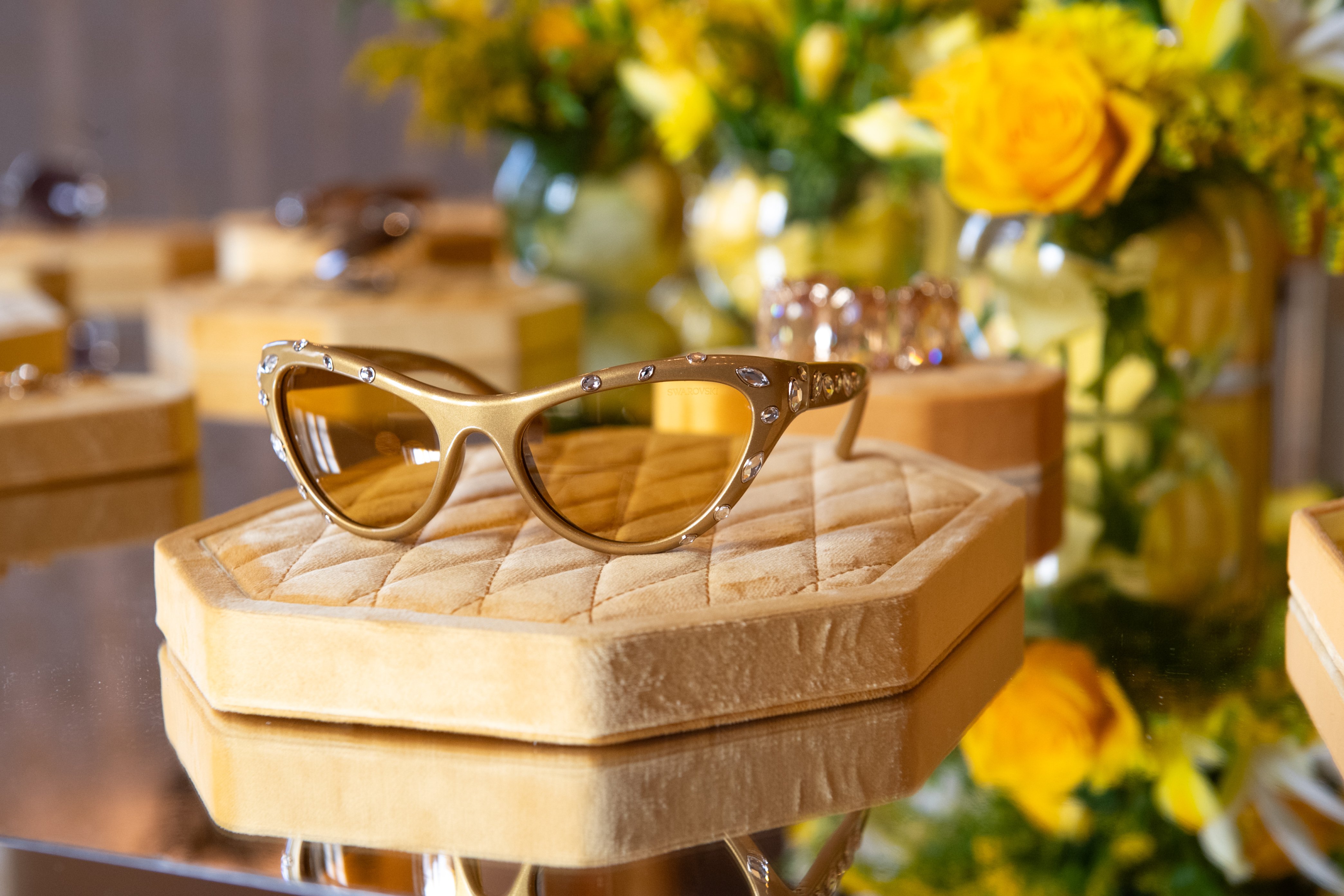L’eyewear è il protagonista dell’evento, una nuova collezione premium di occhiali da sole e da vista lanciata insieme a EssilorLuxottica che trae ispirazione da alcune delle linee di gioielli più iconiche di casa Swarovski.