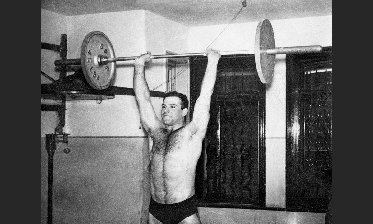 Oliver Sacks ai pesi al Club Maccadi di Londra, nel 1956.