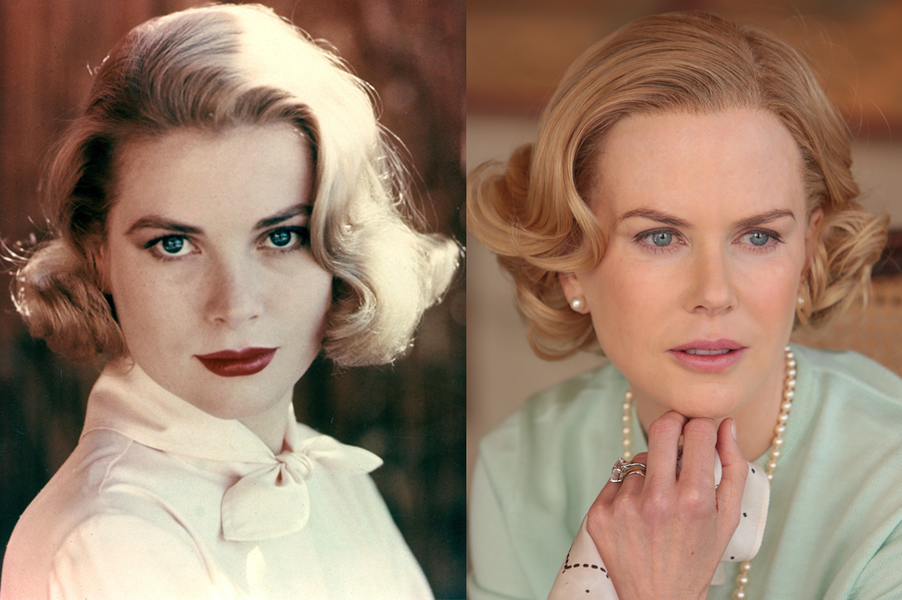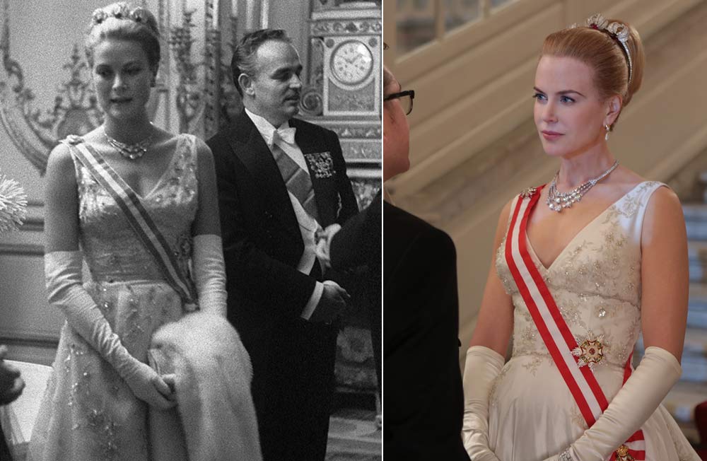 A sinistra un ritratto di Grace Kelly datato 1954, a destra Nicole Kidman nel film di Grace di Monaco.