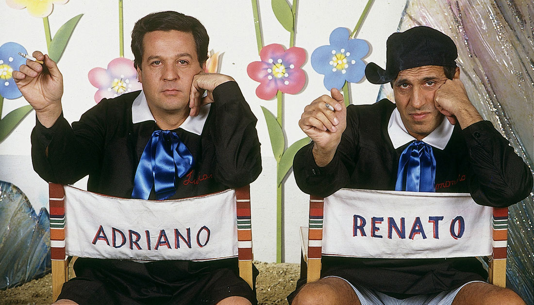 Renato Pozzetto e Adriano Celentano sul set del film “Lui è peggio di me” (1984) di Enrico Oldoini.