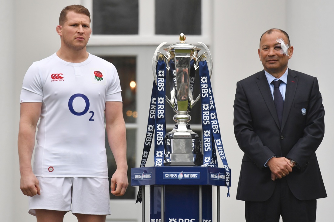 Da sinistra: Dylan Hartley, capitano dell’Inghilterra vincitrice dell’edizione 2016 e ancora favorita, con l’australiano (e incerottato) ct Eddie Jones
