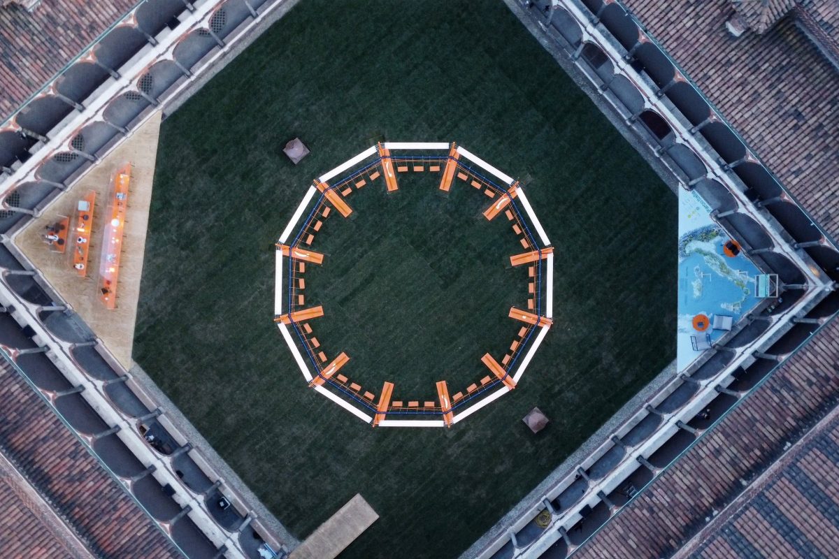 Infatti, è collettiva. È pensata per la comunità. Storicamente il cerchio ricorda un’immagine spaziale che restituisce l’idea del dialogo, del fare parte di una comunità, sentirsi parte di un unico organismo e di un unico spazio. Dovrebbe essere semplice la vita, penso all’oscillazione tra atmosfere e modi di vita, pensieri. Quel dondolio quasi rassicurante dell’altalena dovrebbe diventare una costante delle nostre vite, in un momento difficile come questo in cui il futuro appare lontano e così difficile da gestire. Abbiamo talmente tante incertezze.