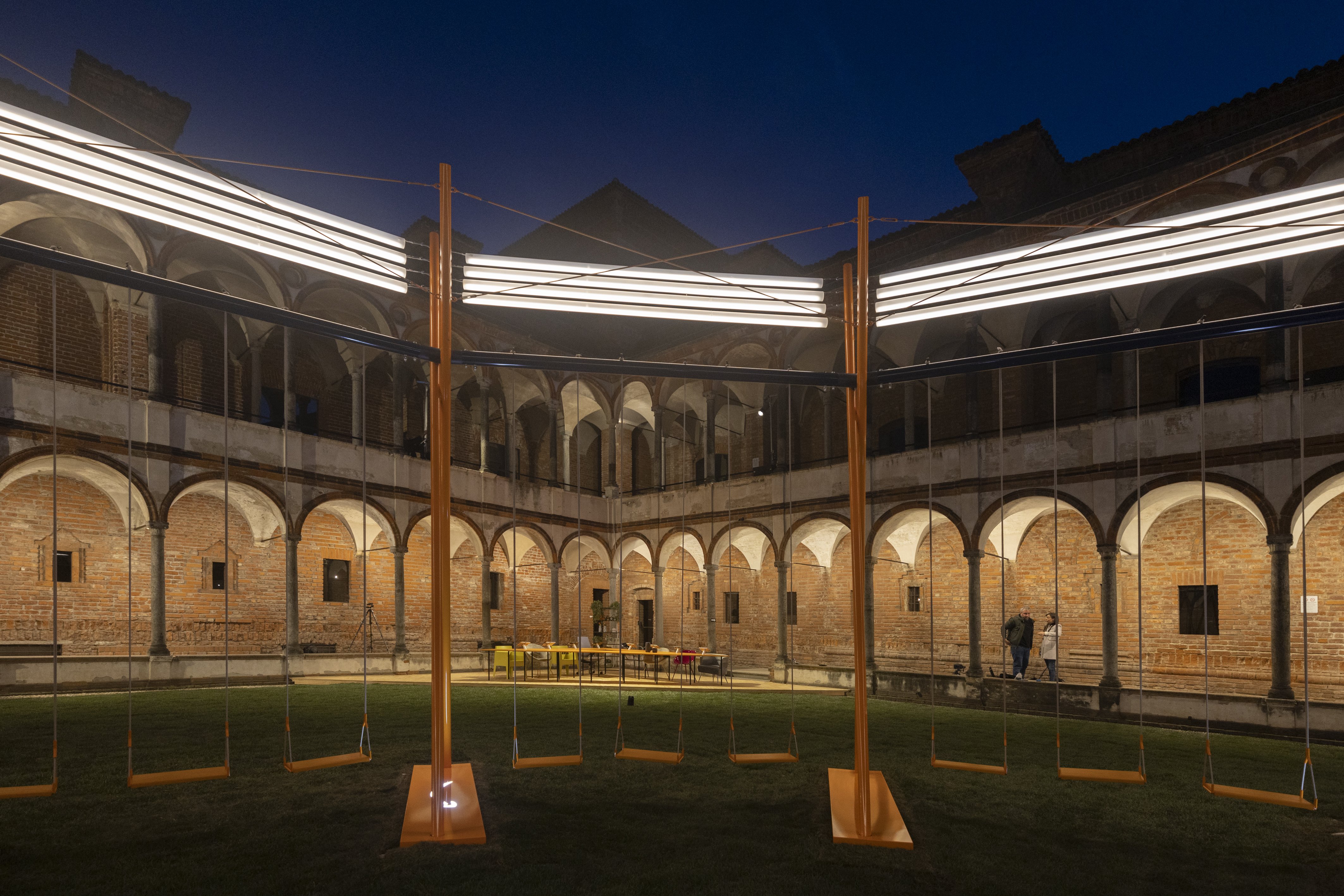 Il gioco è una cosa seria: questo direi ai giovani. Non c’è solo futilità e frivolezza ma anche disciplina, attenzione, rigore come anche un grande senso di libertà e di rischio. L’altalena è rischiosa, questa è l’ispirazione che abbiamo portato qui, poi c’è anche l’idea che durante il periodo del Salone del Mobile si possa passare dallo stato di visitatori e spettatori passavi ad essere attivi, attori di un gioco. Un modo interessante per cambiare lo stile di vita durante il Salone.