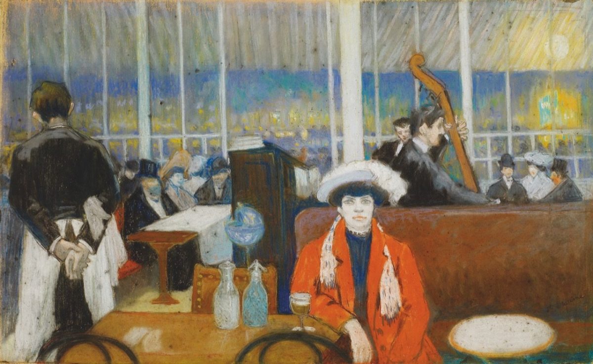 Pur non trascurando le celebri Affiches (come l’iconica Aristide Bruant dans son cabaret del 1893 oppure l’altrettanto celebre Divan japonais, datata 1893) in un allestimento di grande suggestione visiva ed emotiva, esposti dipinti e disegni preparatori, in dialogo con lavori di numerosi artisti contemporanei a Toulouse-Lautrec e che, con lui, condivisero ambienti, luoghi e tematiche: Henry Somm,per esempio (suo il meraviglioso acquarello Femmes devant le Moulin Rouge), o George Bottini ( in mostra con Au Moulin rouge la danseuse blanche).