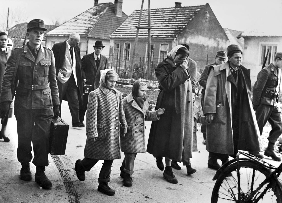 Una famiglia di profughi ungheresi in territorio austriaco