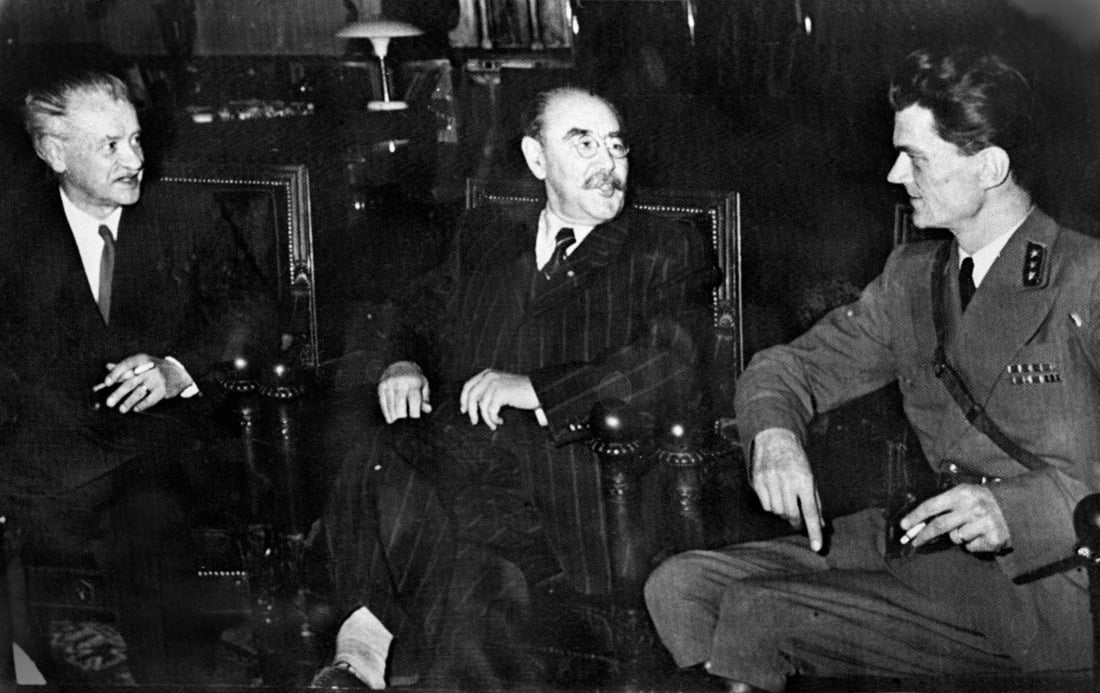 Imre Nagy (c), Zoltan Tildy (Sx), e il generale Pal Maleter Ministro della Difesa. Governo Nagy (24 ottobre-4 novembre 1956).