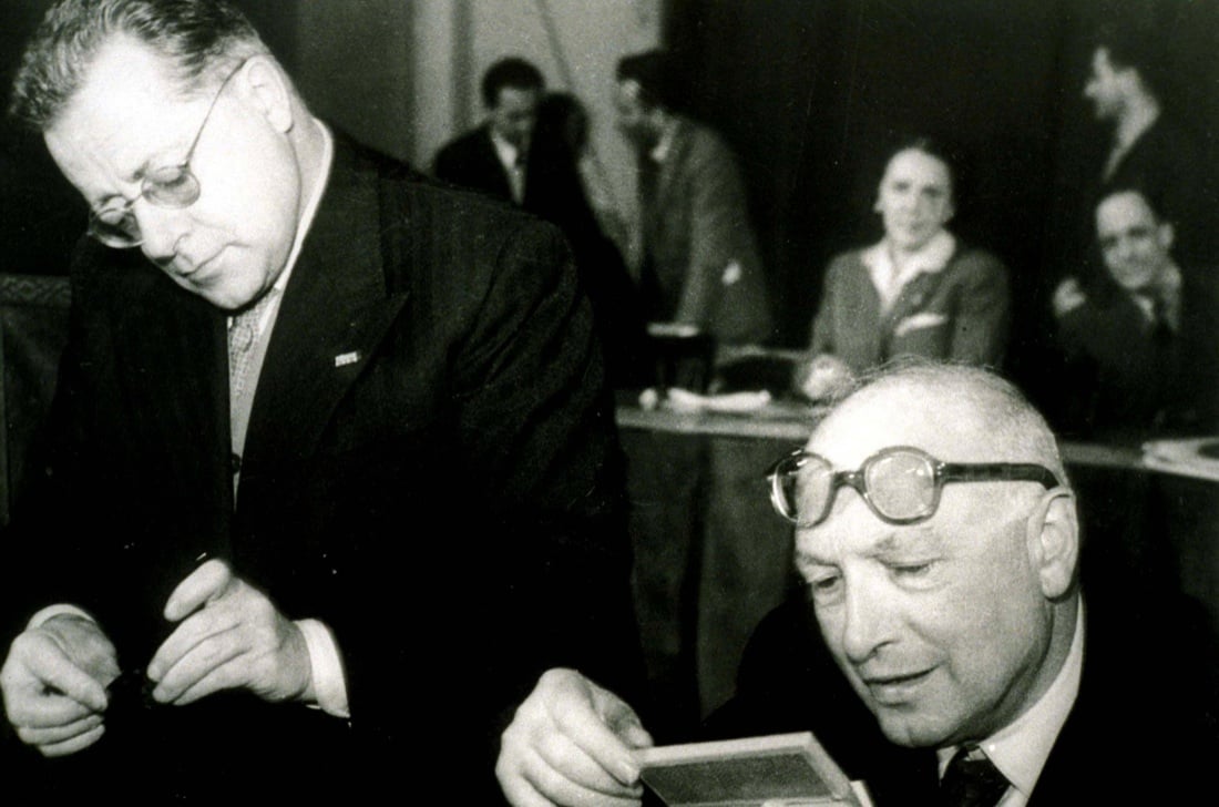 Palmiro Togliatti e Pietro Nenni. I fatti d’Ungheria divideranno per sempre i percorsi dei due partiti italiani.