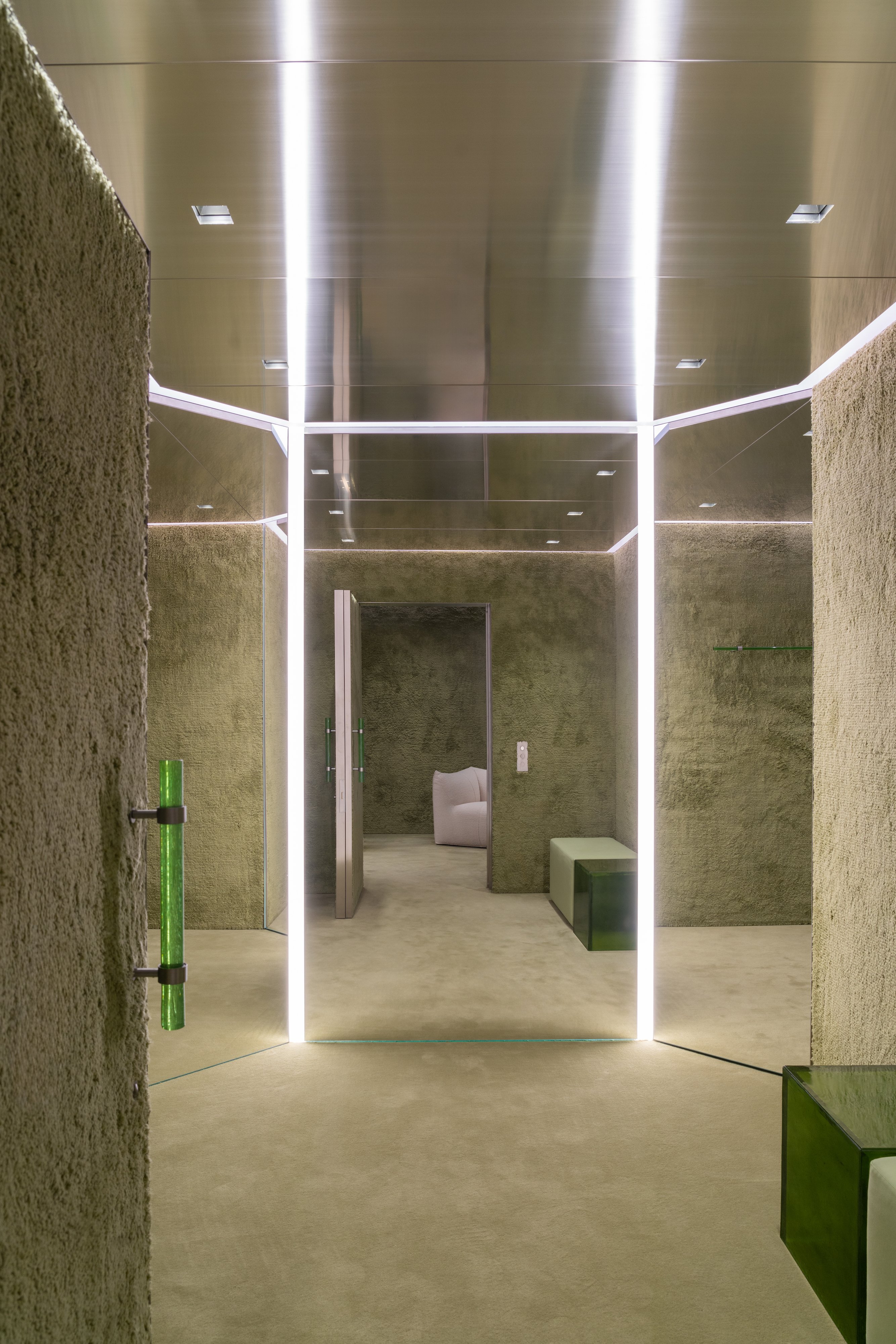 Tra le sale, dove il marmo cipollino e il bardiglio nei pavimenti, formano intricati motivi geometrici, spiccano le sedute e i tavoli di Cassina, B&B, Living Divani e Minotti, icone del design italiano nel mondo, così come le opere selezionate dal curatore Truls Blaasmo. Il percorso attraverso la boutique è, infatti, concepito per i visitatori come un’esperienza visiva che incoraggia l’interazione e la partecipazione, facilitando un dialogo tra giovani talenti e artisti affermati. La collezione rinnova la profonda connessione con il patrimonio artistico del luogo esponendo capolavori di maestri milanesi quali Lucio Fontana, Getulio Alviani, Franco Mazzucchelli e Liliana Moro, insieme a lavori di artisti internazionali come Nathlie Provosty, Jamie Poblete, Adji Dieye e Augustas Serapinas, dando vita a una conversazione che esplora colori e forme.