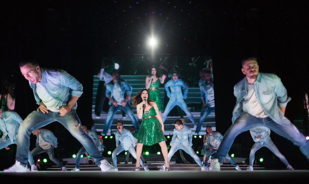 Un momento dello show: 30 ballerini sul palco nel “Pausini Stadi”