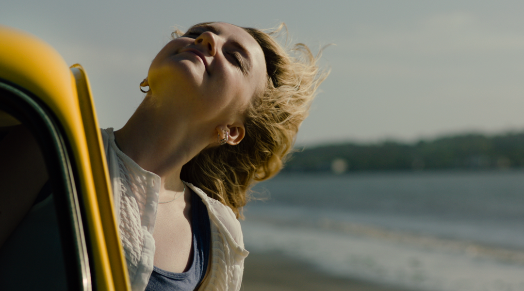 Capelli al vento al finestrino dell’auto, Emily (Evanna Lynch) corre verso suo padre