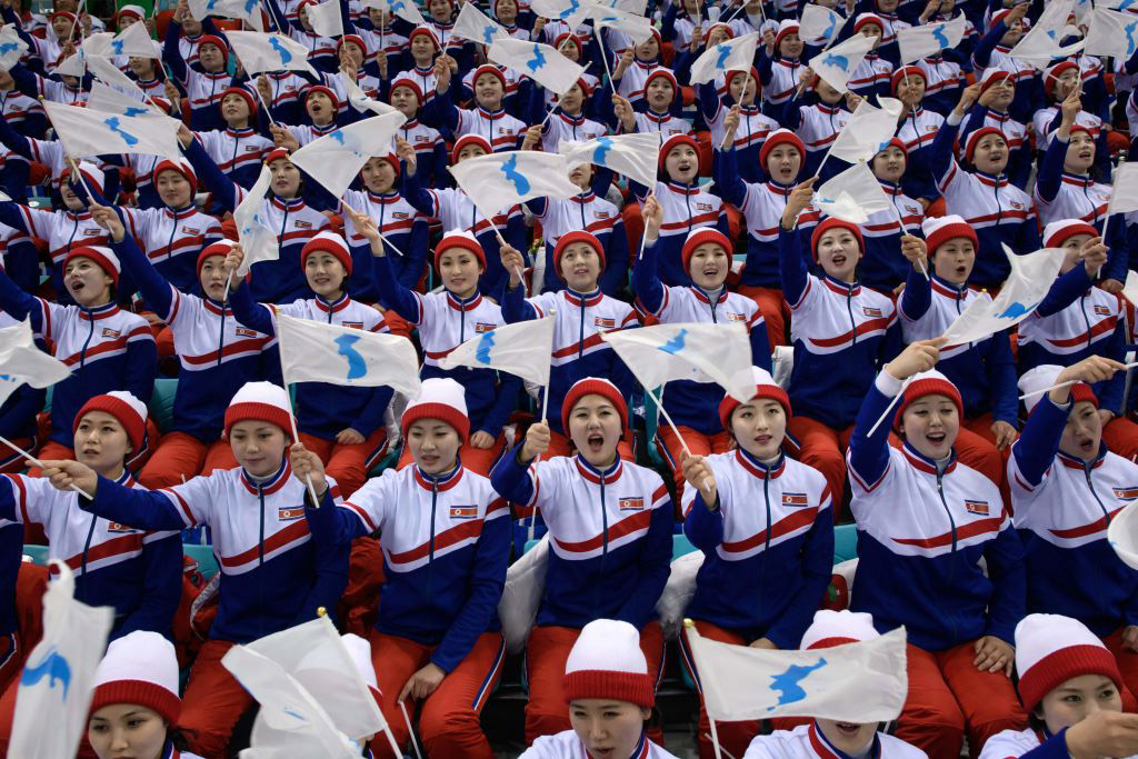 Il mormorio si fa intenso all’ingresso del Kwandong Hockey Center delle cheerleader della Corea del Nord venute a veder giocare la squadra femminile di hockey delle due Coree riunite contro la Svezia, o durante lo slalom maschile.