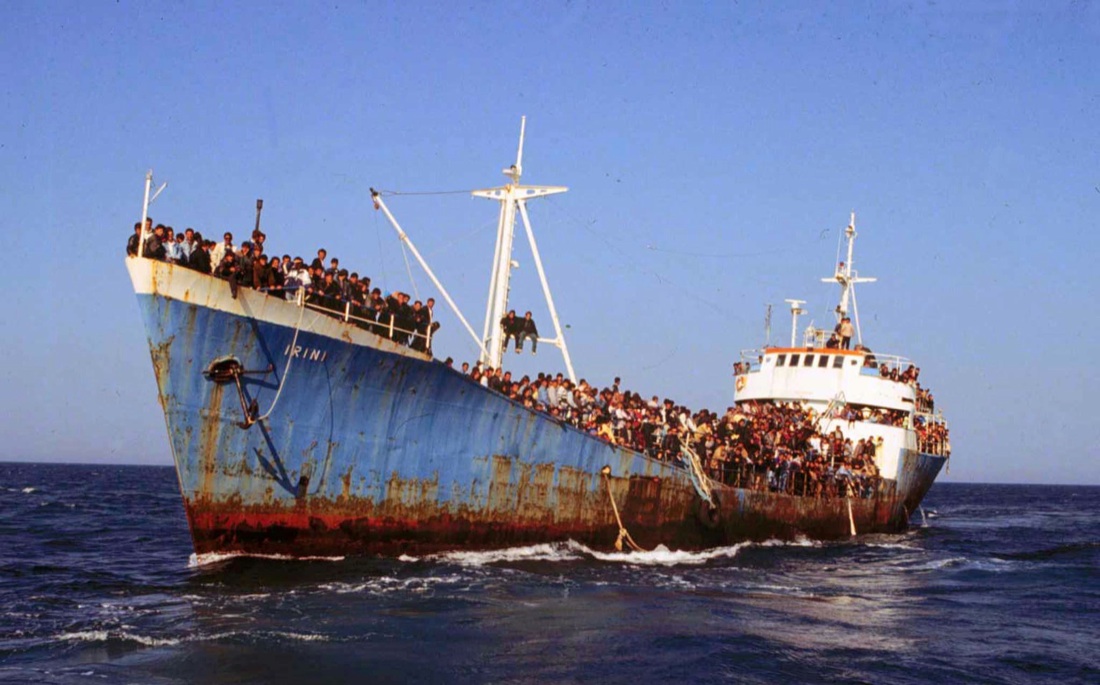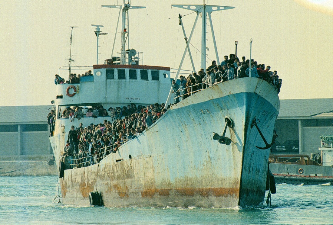 1991, profughi albanesi diretti verso le coste pugliesi