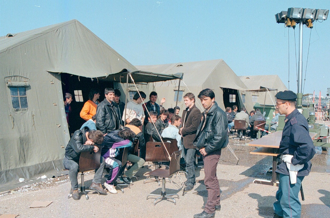 Bari, 1991, un campo di raccolta dei profughi albanesi