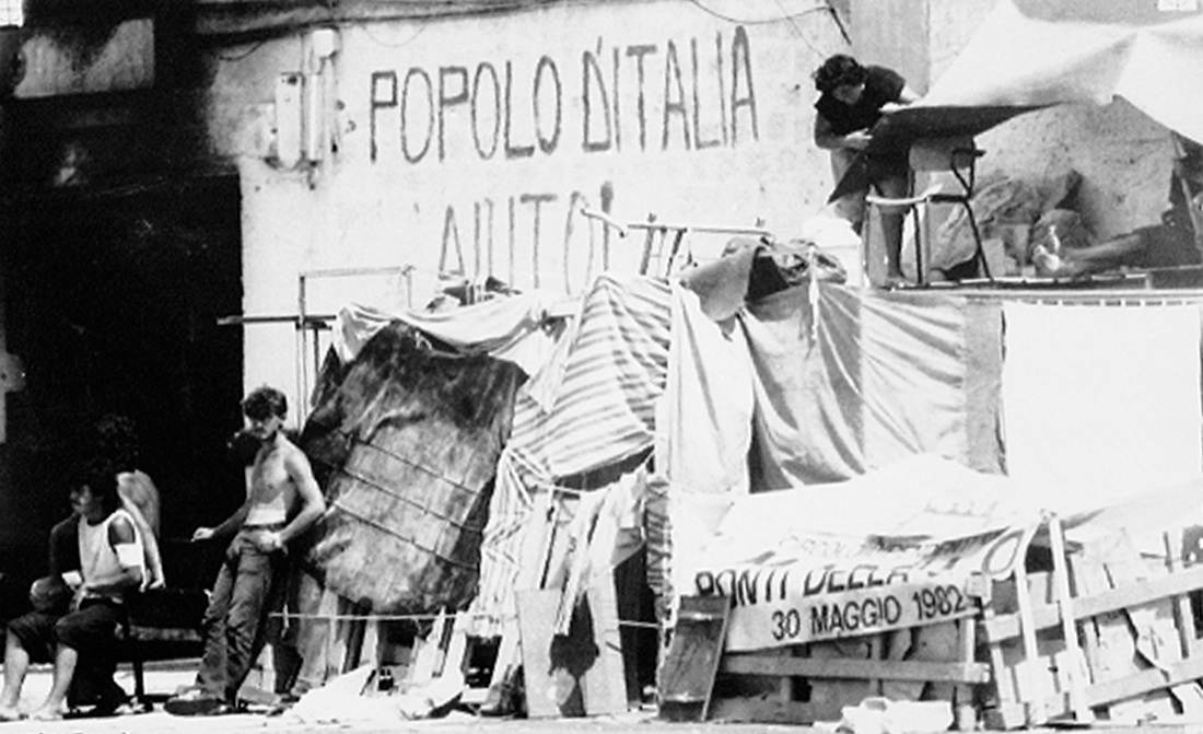 Bari, 1991, un accampamento provvisorio di profughi albanesi