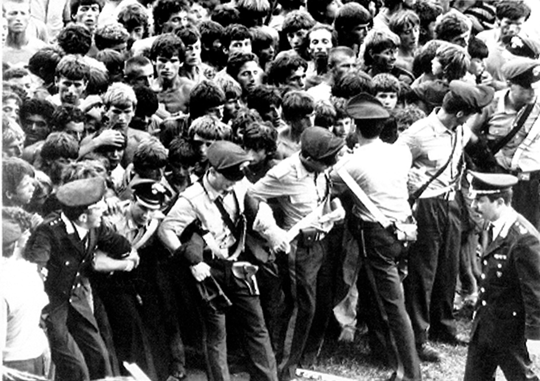 Bari, agosto 1991, profughi albanesi ospitati provvisoriamento nello stadio