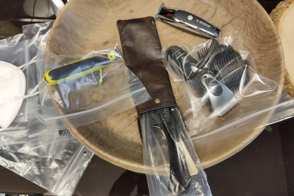 Come scoprirò dopo il taglio, la poltrona viene igienizzata dopo ogni uso, così come la superficie in cui vengono appoggiati gli strumenti. Ciascuno ha subito un processo di sterilizzazione ed è stato imbustato. Lo stesso processo è stato riservato all’asciugamano e a un’ennesima fodera protettiva che mi viene appoggiata sopra e legata al collo: ci pensa una lavanderia specializzata.