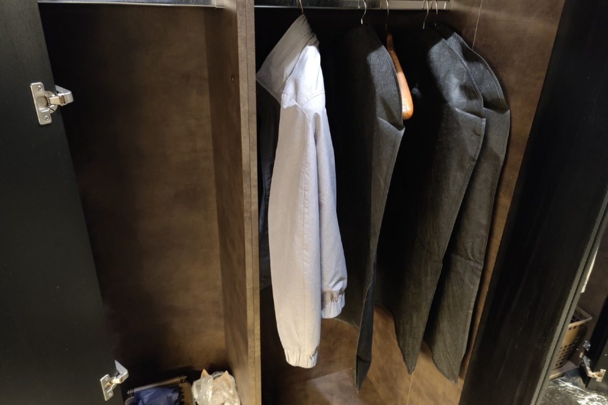 Un armadio con copriabiti per evitare che i cappotti entrino in contatto tra loro.