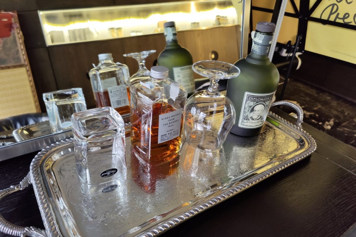 In sala d’attesa, in un’altra ala del negozio, ci si può servire un drink, mettendo il bicchiere a lavare dopo l’uso.