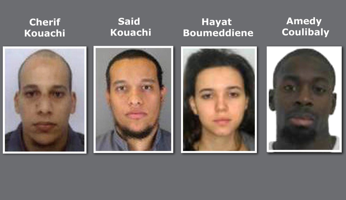 I fratelli Kouachi, Coulibaly e la fidanzata di quest’ultimo Boummeddiene fuggita poco dopo gli attentati del 7-8 gennaio 2015