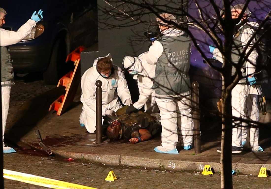 Il corpo di Amedy Coulibaly ucciso dalle forze speciali dopo aver ucciso 4 ostaggi nel supermercato kosher di Parigi