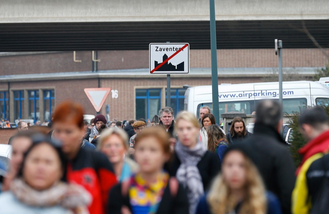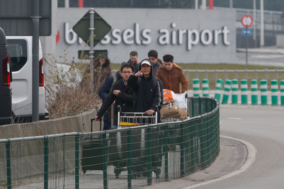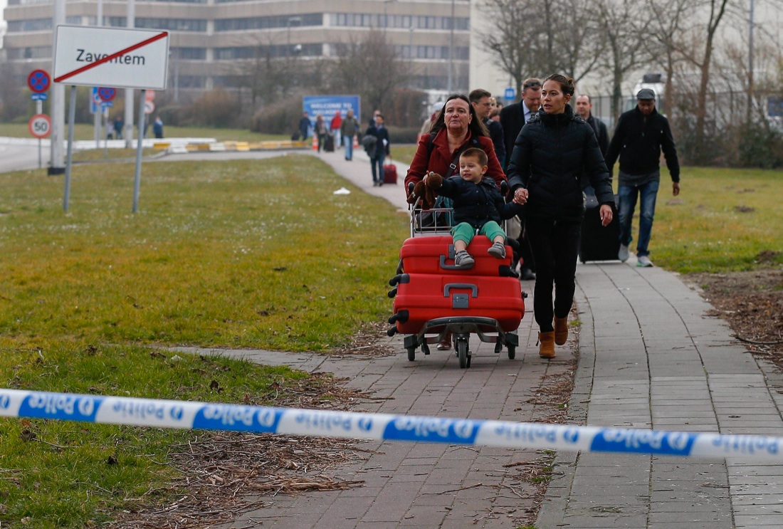 Bruxelles, 22 marzo 2016, dopo l’attentato in aeroporto, passeggeri per le strade di Zaventem