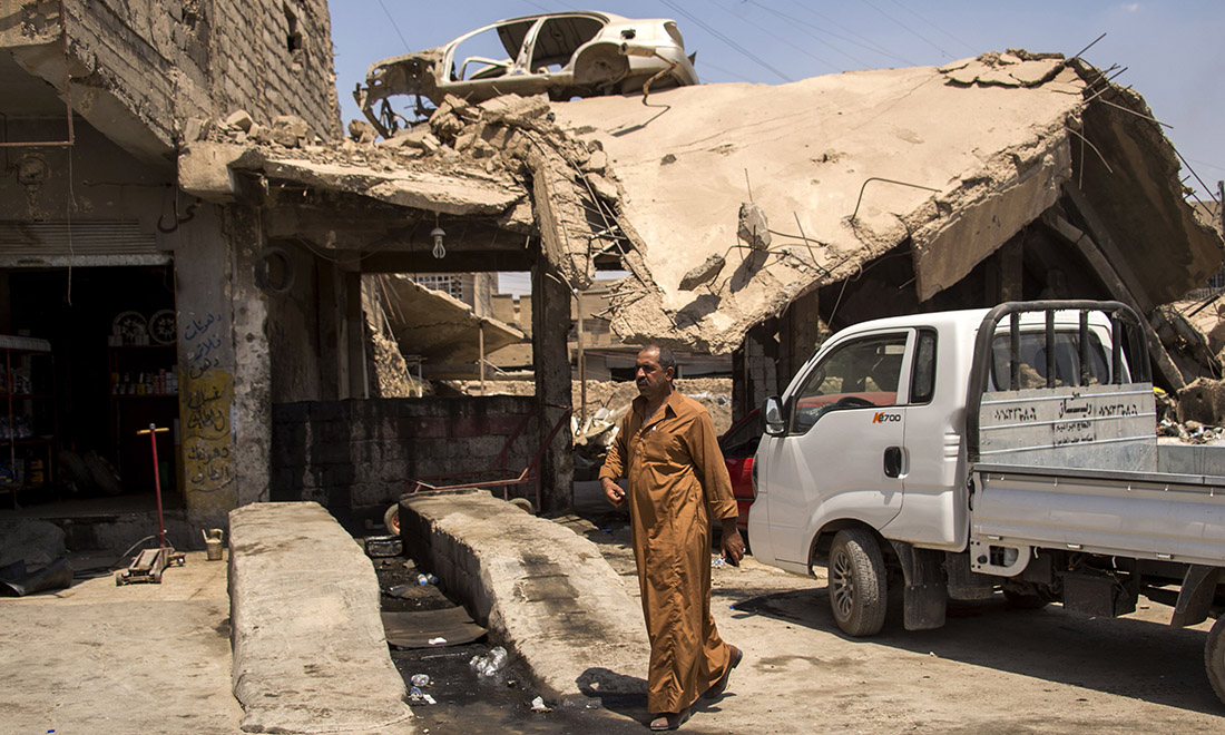 9 luglio 2017. La distruzione nella Città Vecchia di Mosul, dopo la fine dalla battaglia che ha portato alla sconfitta dell’Isis.