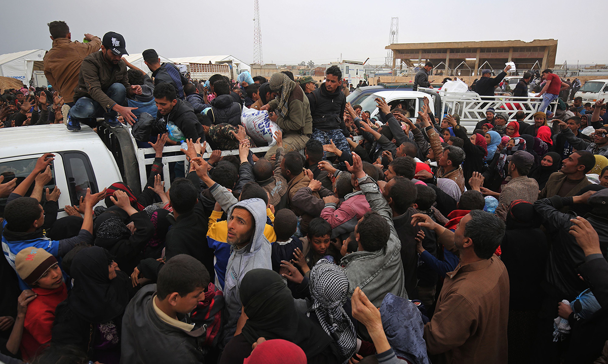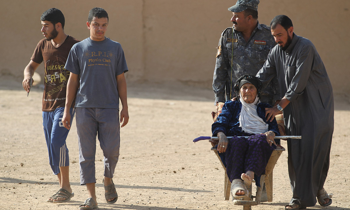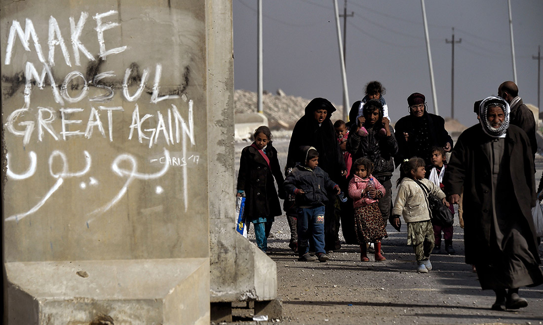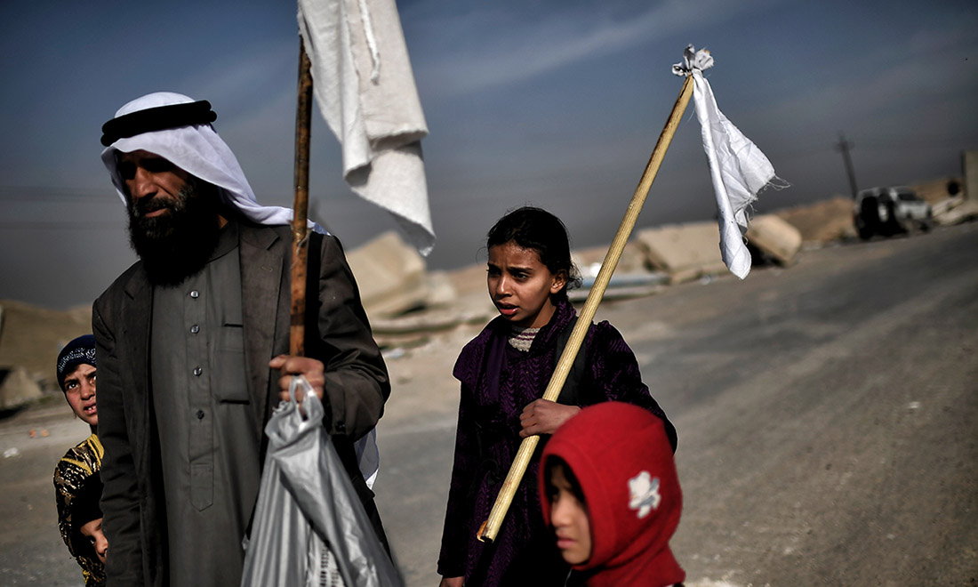 20 giugno 2017. Civili in fuga dalla Città Vecchia di Mosul, nel corso della fase finale della battaglia dell’esercito governativo per sottrarre la città ai miliziani dell’Isis.