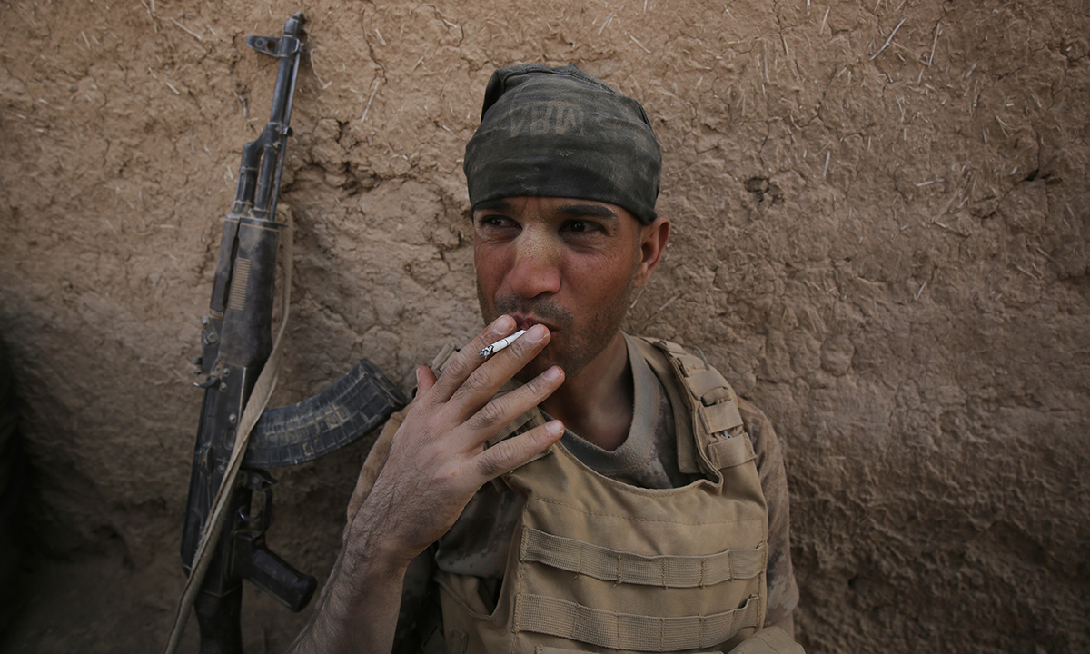 24 maggio 2017. Un soldato delle forze irachene si riposa vicino alla linea del fronte ai margini della Città Vecchia di Mosul, dopo che l’area è stata sottratta al controllo dell’Isis.