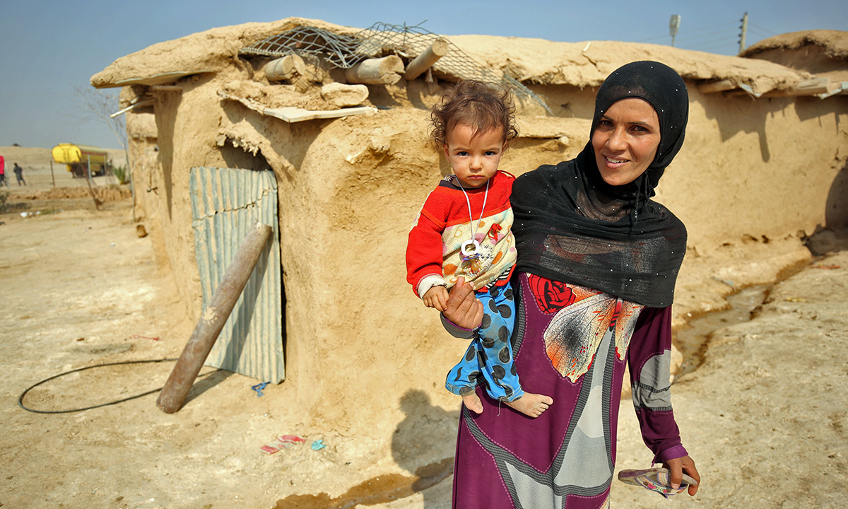 12 luglio 2017. Una donna e una bambina in un campo per rifugiati allestito dall’UNHCR a Hammam al-Alil, alla periferia di Mosul, in Iraq.