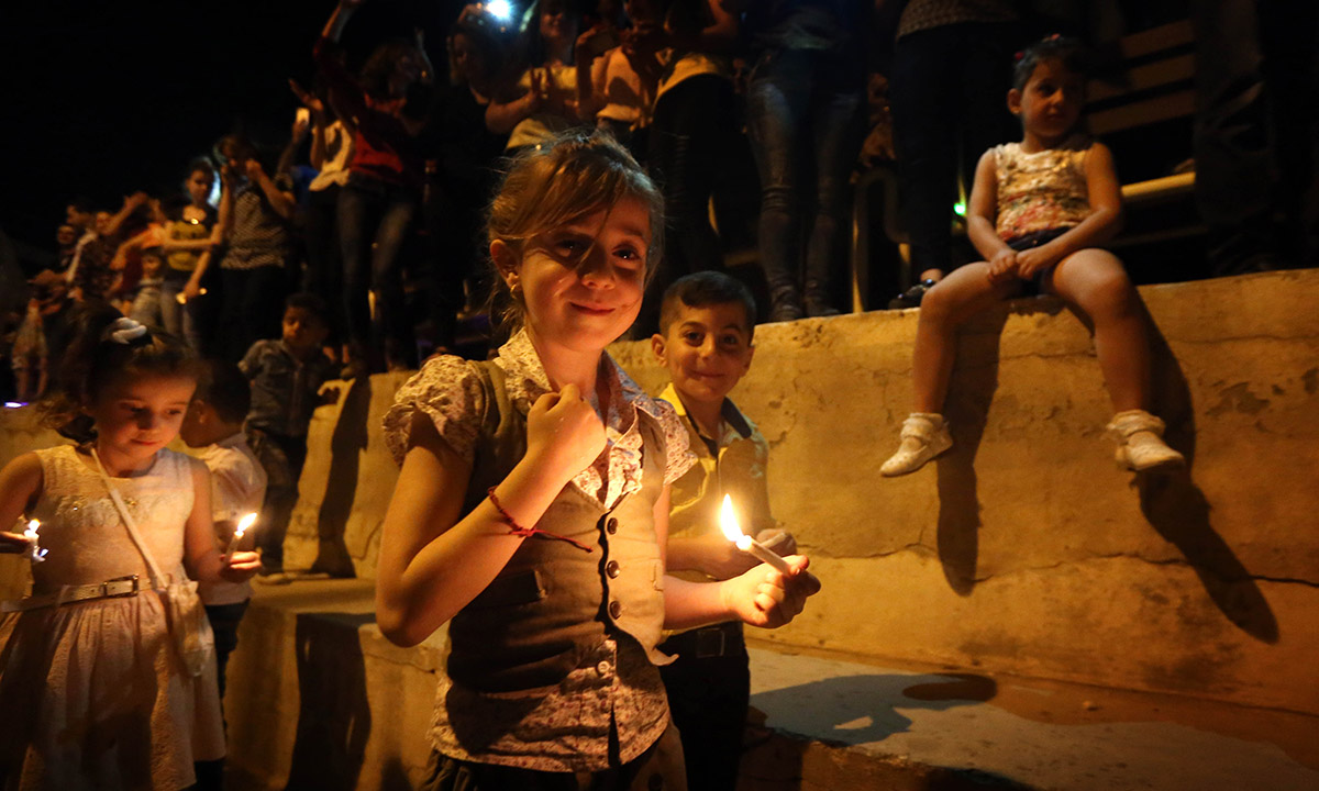 18 ottobre 2016. Cristiani iracheni sfollati partecipano ad Arbil, capitale della regione autonoma del Kurdistan iracheno, ai festeggiamenti per la liberazione di Qaraqosh, un tempo la città cristiana più grande del Paese, caduta nell’agosto 2014 nelle mani dell’Isis.