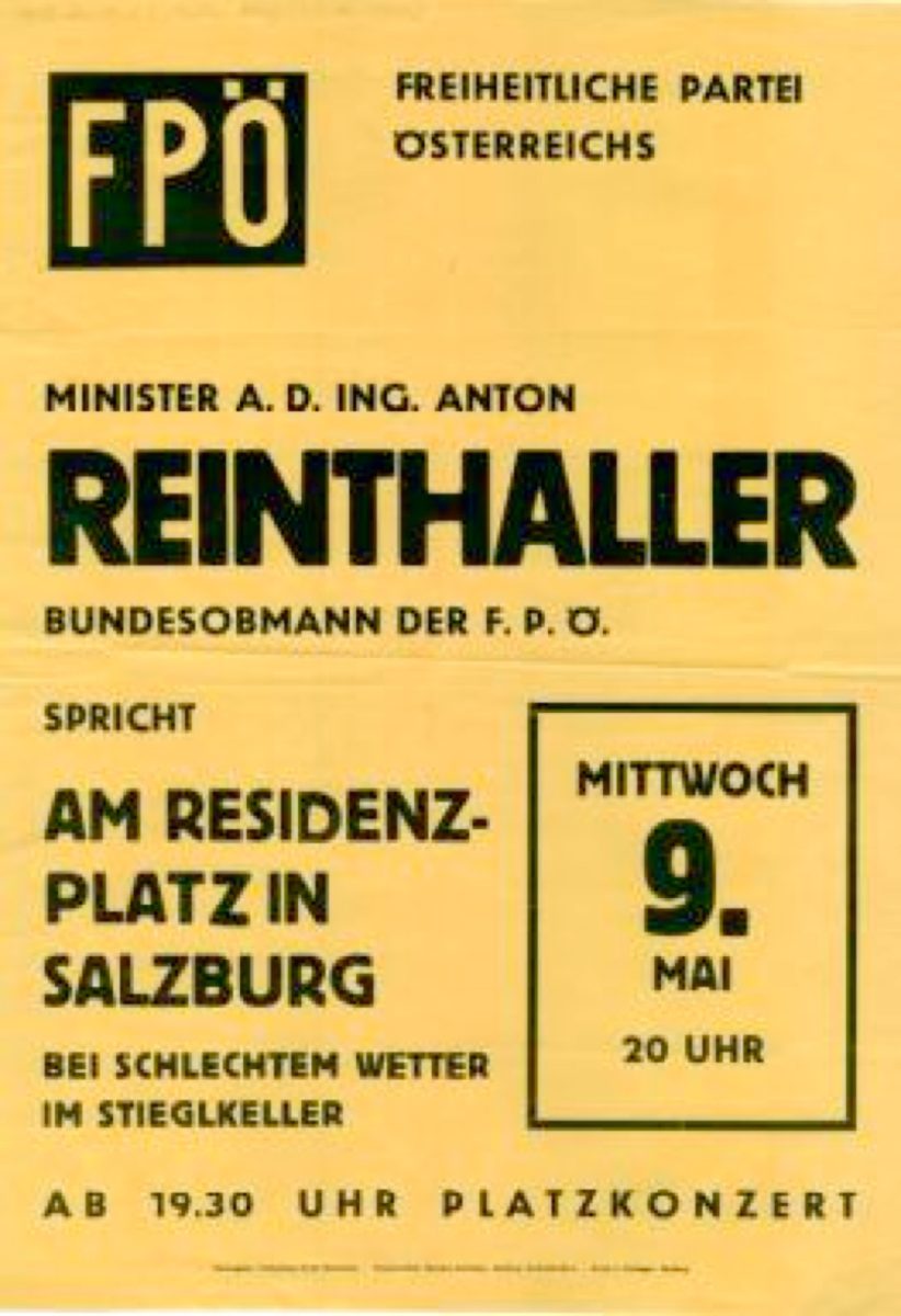 Manifesto elettorale del comizio di Reinthaller, leader dell’FPO ed ex SS