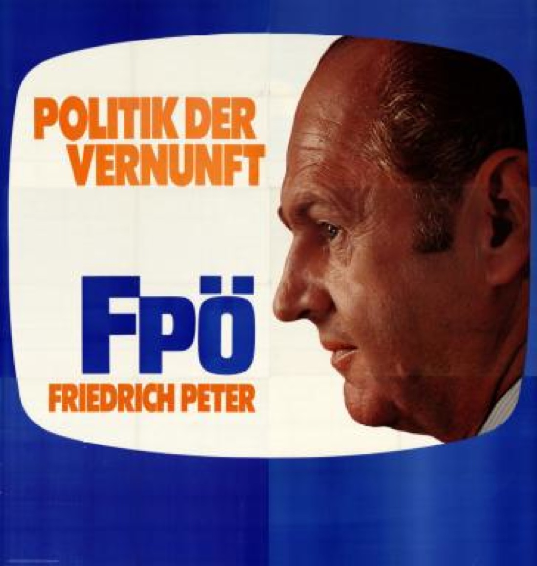 “Politica della ragione”: slogan sul manifesto elettorale di Friederich Peter della metà degli anni ’70