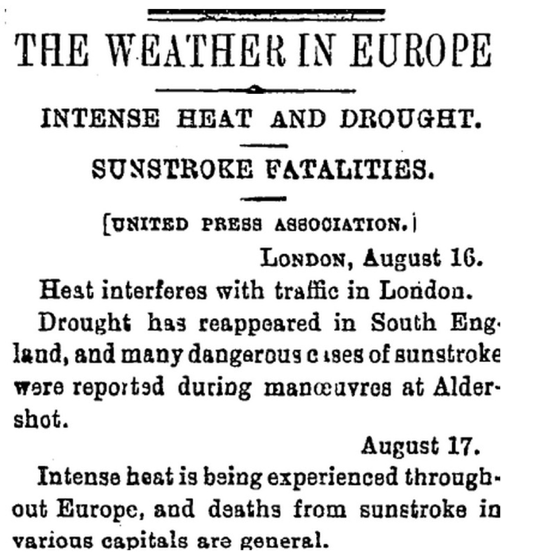Articolo apparso su un quotidiano britannico sugli effetti della terribile siccità del 1893