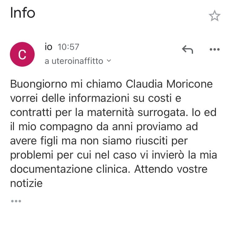 Si parla tanto di mamme surrogate ed è tutto clamorosamente illegale ma assolutamente facile, anzi, facilissimo. In un’ora abbiamo rintracciato la società su fb e poi via mail abbiamo avuto tutte le info (tariffario, esami, documenti necessari) ed eravamo ad un bonifico dal via definitivo dal comprarci il ventre di una ragazza e regalarci un figlio.