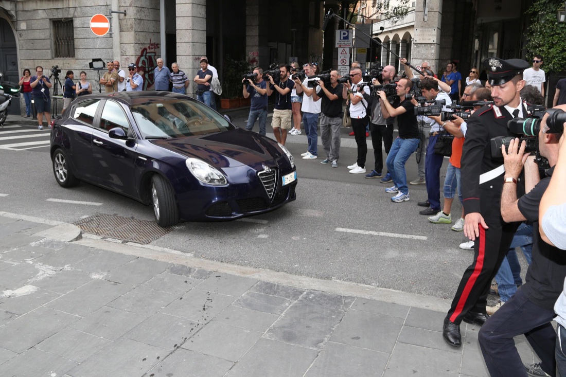L’uscita di Massimo Giuseppe Bossetti dalla caserma del Comando Provinciale dei Carabinieri di Bergamo, 16 giugno 2014