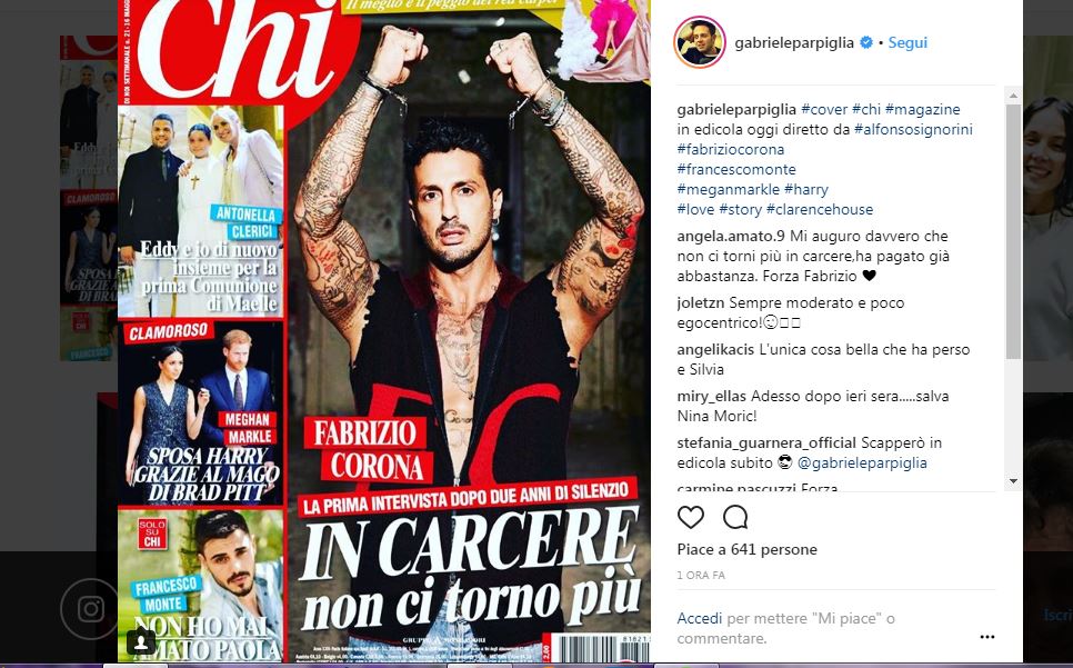 Detto fatto: stamane il volto dell’ex re dei paparazzi è sulla copertina del settimanale Chi con un’intervista fiume concessa al giornalista e amico Gabriele Parpiglia che, via Instagram, l’ha annunciata in anteprima.