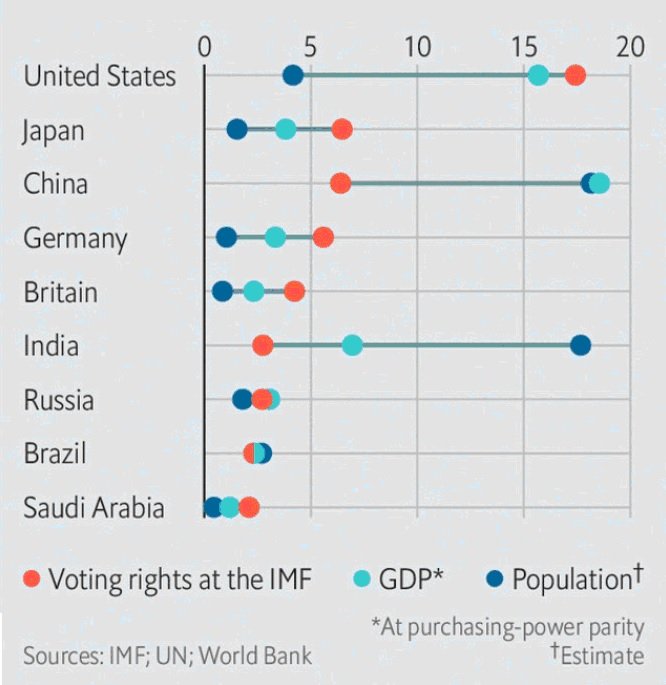 Va anche sottolineato come molti degli abitanti di questi paesi abbiano sperimentato negli ultimi decenni l’ipocrisia delle politiche occidentali e conseguentemente la marginalità del loro contributo allo sviluppo. Così mentre Pechino vede l’FMI come un veicolo di potere occidentale, in considerazione del fatto che gli USA hanno il maggior numero di diritti di voto nell’organizzazione, anche in molti paesi dell’Africa l’FMI e la Banca mondiale sono considerati uno strumento di influenza occidentale.