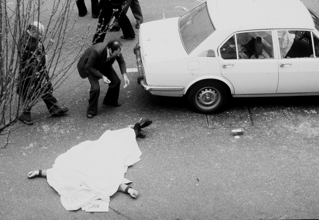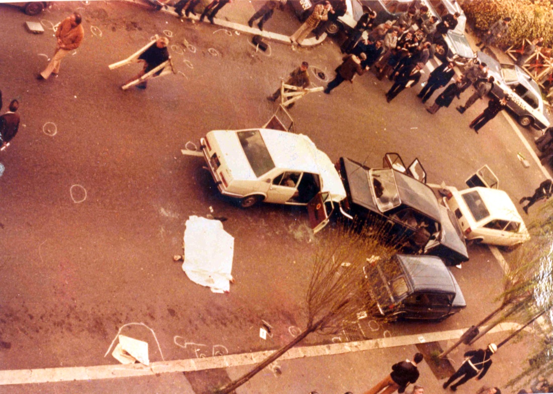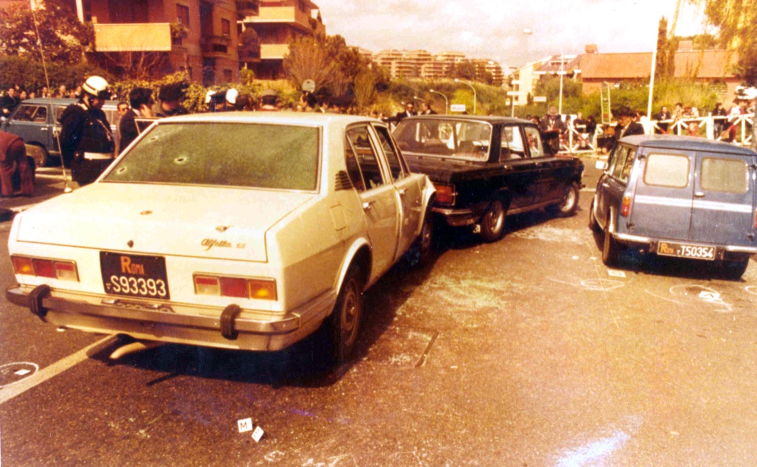 In una manciata di secondi il commando terrorista sbucato dai cespugli di fronte al bar “Olivetti” fa fuoco sull’Alfetta della scorta, uccidendo sul colpo gli agenti Giulio Rivera e Raffaele Iozzino, l’unico riuscito a scendere dall’auto durante l’assalto. Il Vicebrigadiere Francesco Zizzi giaceva ferito gravemente dai proiettili delle BR, l’unico rimasto in vita oltre a Moro. All’interno dell’auto di Aldo Moro giaceva il corpo dell’autista, L’appuntato dei Carabinieri Domenico Ricci. Sul sedile anteriore del passeggero della 130 il corpo del maresciallo dei CC Oreste Leonardi, responsabile della scorta. Di dietro, il posto vuoto occupato dall’Onorevole Aldo Moro.