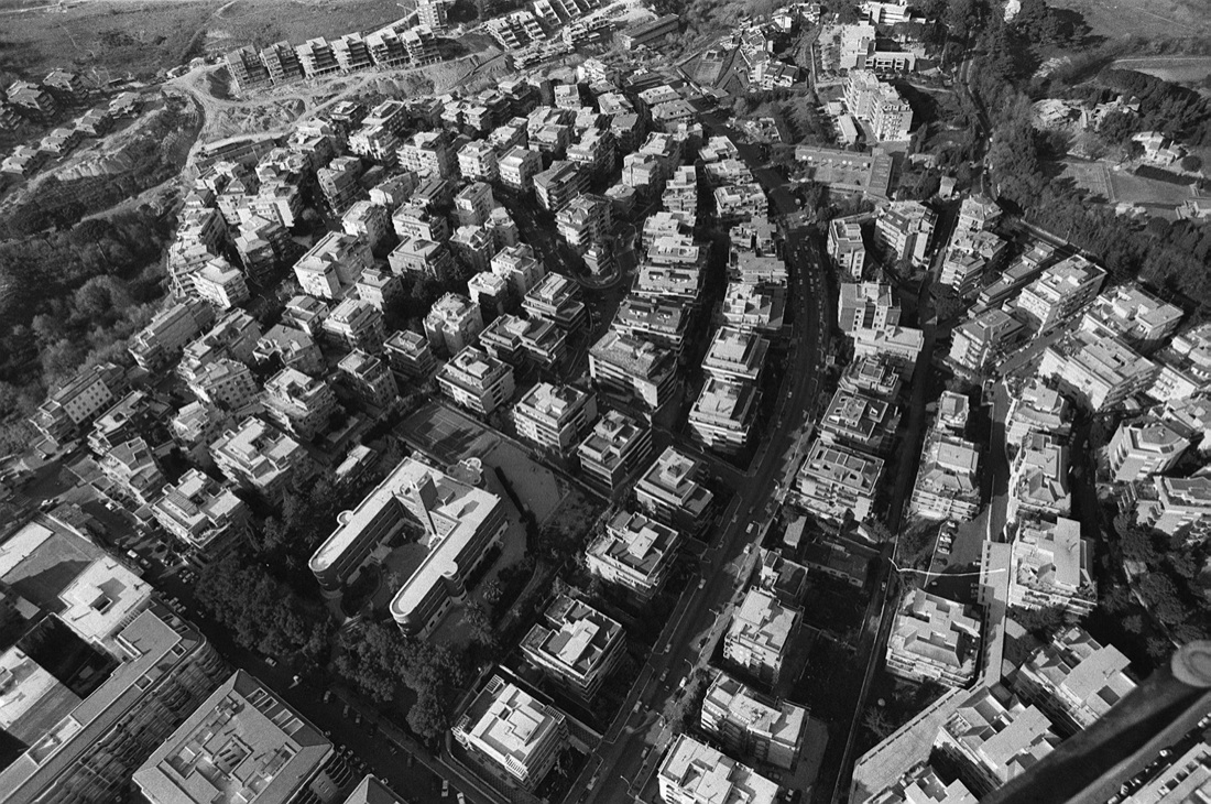 Una panoramica della zona del rapimento dell’Onorevole Moro ripresa il 16 marzo 1978 dagli elicotteri dei Carabinieri decollati da Pratica di Mare