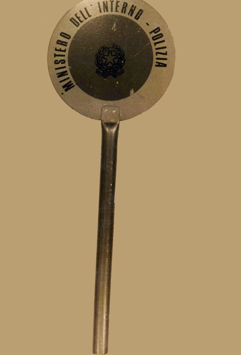 La paletta della Polizia di Stato rinvenuta nella borsa Alitalia rinvenuta vicino alla Fiat 128 familiare utilizzata dalle BR
