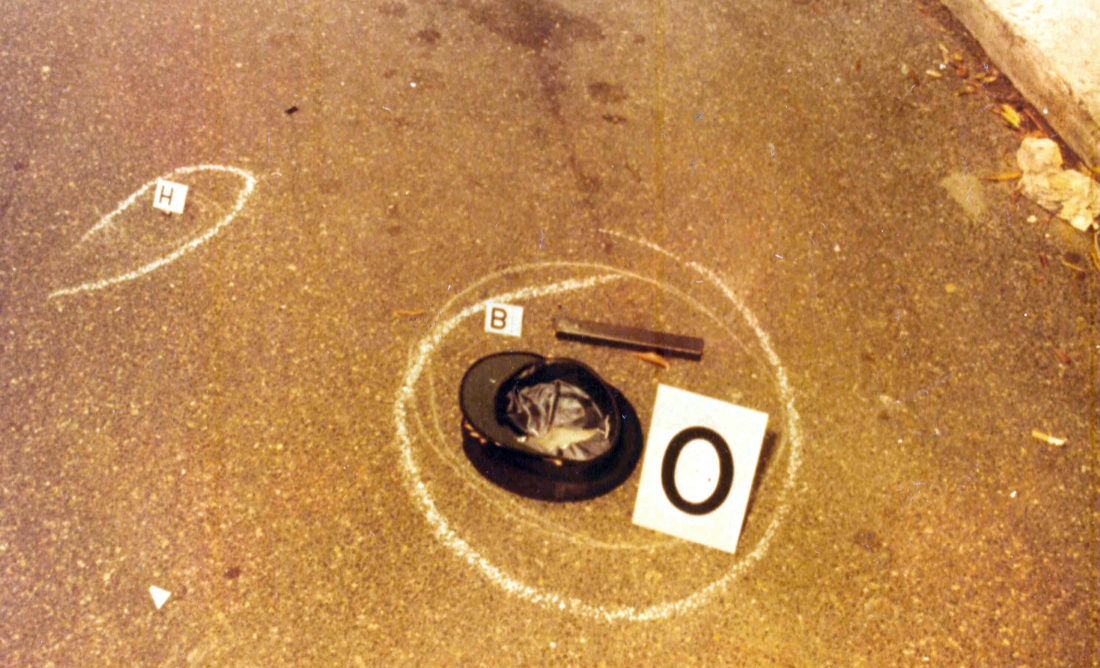 Rilievi tecnici in Via Mario Fani: Particolare dei bossoli rinvenuti sulla scena della strage del 16 marzo 1978.