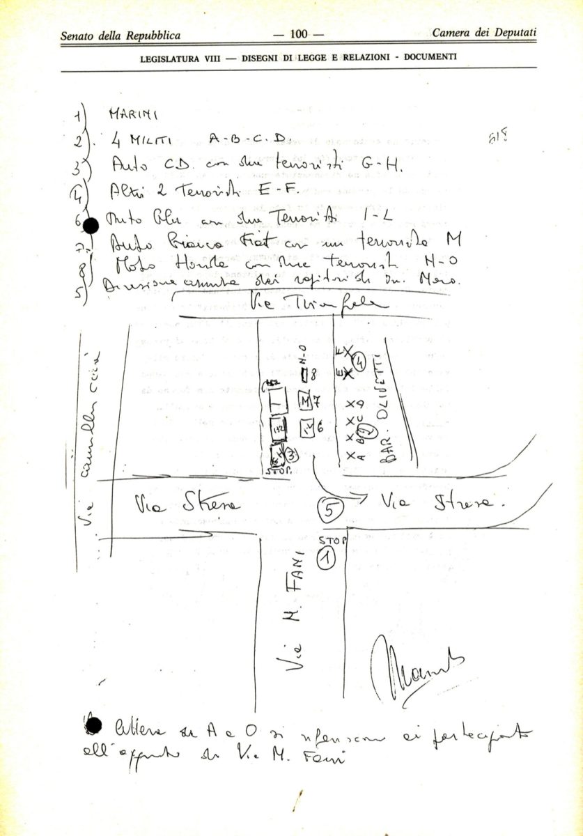 All’incrocio tra le due vie del quertiere Trionfale, la storia italiana sarà segnata da uno dei fatti più sconvolgenti dal dopoguerra. All’improvviso la vettura di Moro tamponava una Fiat 128 familiare di colore bianco con targa falsa del Corpo Diplomatico (CD 19707), che aveva tagliato la strada alle due auto in viaggio verso la destinazione.