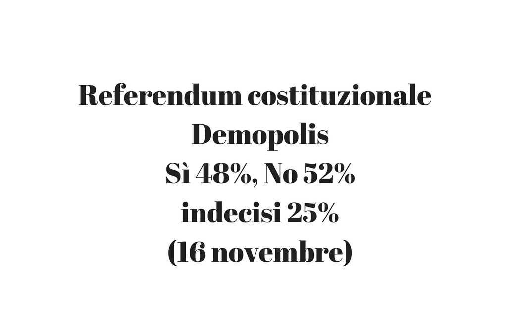 Referendum costituzionale Demopolis Sì 48%, No 52%, indecisi 25% (16 novembre 2016)