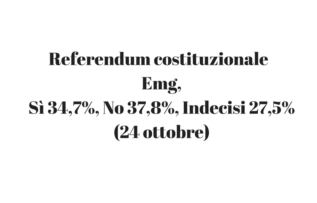 Referendum costituzionale Emg, Sì 34,7%, No 37,8%, Indecisi 27,5% (24 ottobre)