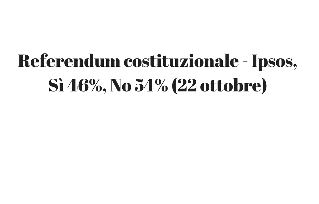 Referendum costituzionale, Sondaggio Ipsos, 22 ottobre 2016: Sì 46% – No 54%