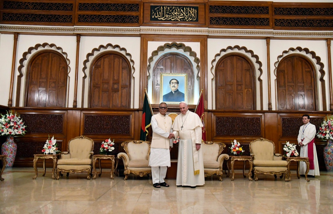 Papa Francesco accolto dal Presidente del Bangladesh Abdul Hamid nel Palazzo Presidenziale a Dacca, Bangladesh, 30 novembre