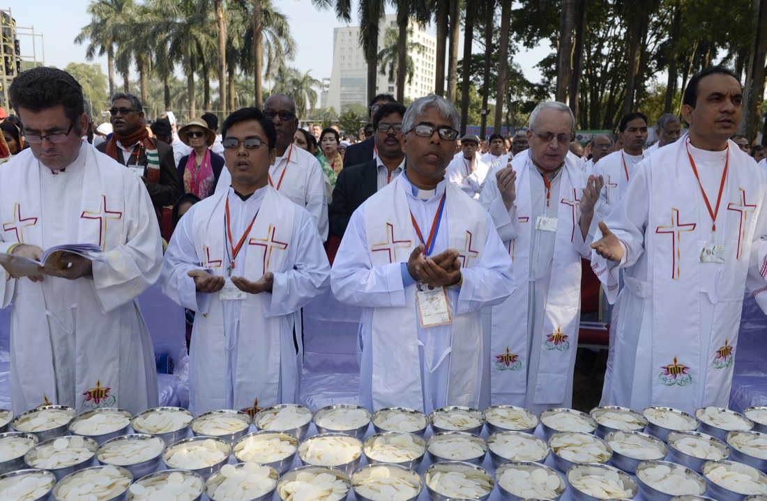 Sacerdoti cattolici del Bangladesh partecipano alla Messa celebrata da Papa Francesco a Dacca,1 ° dicembre 2017