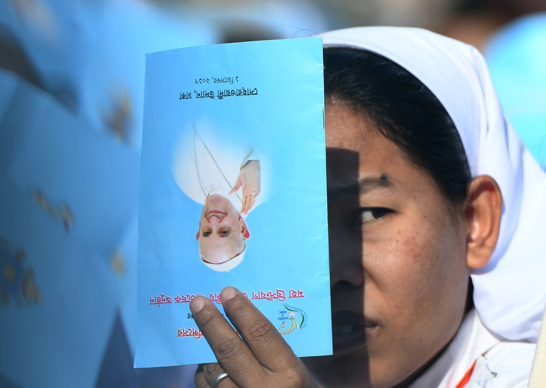 Una suora cristiana del Bangladesh in attesa della messa del Papa a Dacca,1 ° dicembre 2017